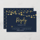 This elegant Blue Strings of Lights RSVP card features strings of lights and the word "Reply" in faux gold foil against a dark blue background. Card has a polka dot pattern back side. Check out other matching items here https://www.zazzle.com/collections/strings_of_lights_faux_gold_celebration_collection-119311942951401241?rf=238364477188679314