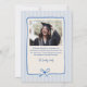 Elegant Blue Stripes Bow Frame Graduation Photo Announcement