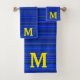 elegant blue stripes pattern monogram bath towel set. custom colorful stripes pattern bath towel set.