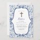 Elegant Blue Toile de jouy baptism Invitation