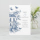 Elegant Blue Toile De Jouy QR Code Wedding Invitation