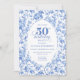 Elegant Blue Toile Rose Floral 50th Birthday Invit Invitation