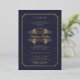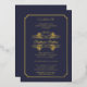 A simple yet elegant scroll and scalloped frame real gold foil and dark blue graduation party invitation design that can be personalized for high school, college or university graduations. Design by Holiday Hearts Designs (all rights reserved).