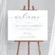 Welcome your guests to the ceremony with this elegant welcome wedding sign. Design with an exquisite mixture of modern handwritten calligraphy and block typography in an attractive blue tone. Available in many size options. Ability to edit the text colour by selecting the "Edit Using Design Tool" button. IMPORTANT NOTE: This sign is in premium poster paper style, easy to frame or glue/staple to inexpensive MDF or foam board for display. If you prefer this sign prepared for display already on a foam board, please follow these easy steps: on this sign product page, scroll up, until you see a section with images called "Transfer design to a product". Use the arrow on the images to look at all the options, until you reach the "Foam Boards" option. Click on it, and it will transfer the design into a foam board for you. Initially, sometimes it transfers the design into a very big foam board size, nevertheless, you can change the sign into the size you need right there on the product page and even see how it looks already in a stand. When you add this design to your shopping cart, it will tell you the back side is blank. Don't worry about it, as this only means that the back of the sign will be white. If you need help, please message me and I'll get back to you as soon as possible". Part of our "Blue Watercolor Botanical Monogram Wedding" collection with various coordinating products available.