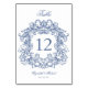 Elegant Blue Vintage Crest Script Wedding Table Number