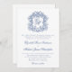 Elegant Blue Vintage Monogram Crest Wedding Invitation
