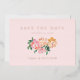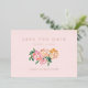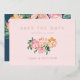 This elegant wedding invitation suite features a stunning watercolor floral design in soft tones of beige, light yellow, blush pink and orange, set against a beautiful mid-dark blue background.