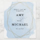 Elegant Blue Watercolor Splash, Gold Geo Frame Wine Label