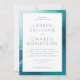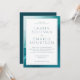 This elegant wedding invitation features a serene watercolor design with soft blue-green hues framing the crisp white central area, creating a calming and sophisticated atmosphere. The minimalist layout emphasizes clarity and balance, using ample white space to highlight the classic serif typography that conveys formality and timelessness. Perfect for couples seeking an understated yet refined aesthetic, this invitation is ideal for celebrating love in style.