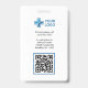 This professional healthcare ID badge is designed for medical professionals who value clarity and style. The prominent blue medical cross symbol, along with the customizable fields for your photo, name, and credentials, makes it instantly recognizable. The back of the badge offers a practical layout for essential contact details and a QR code for quick access to information. It's an essential accessory for nurses, doctors, and medical staff to maintain a polished and organized appearance.