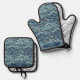 Elegant Blue Wave Pattern with Gold Accents Oven Mitt & Pot Holder Set