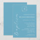 This minimalist baptism invitation exudes elegance and simplicity, perfect for a sacred celebration. The blue and white design features the word Baptism in graceful script calligraphy, adding a touch of sophistication. At the centre, a delicate white cross is framed by a white wreath of foliage, symbolizing peace and faith. The understated design, paired with subtle accents, highlights the importance of this special day, making it an ideal choice for inviting loved ones to witness and celebrate a beautiful milestone in your child's spiritual journey.