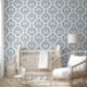 Elegant Blue White Damask Pattern Stick n Peel Wallpaper