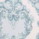This stick-n-peel wallpaper features an elegant and intricate design in blue and white. The pattern showcases a vintage damask motif with ornate, symmetrical scrollwork and floral elements. The arabesque design is classic and refined, evoking a luxurious and detailed aesthetic. The decorative foliage and elaborate detailing add to the wallpaper's sophisticated and timeless appeal.