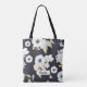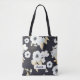 Simple and chic, this Elegant Blue and White Floral Pattern Monogram tote bag is the perfect way to keep all your things together or for shopping. Features a navy blue background with gold scratches, light blue and white flowers with light green leaves. Navy blue typography "Anabelle" can be changed to fit anyone's name.