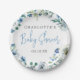 Elegant Blue White Floral Spring Boy Baby Shower Paper Plate