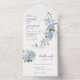 Elegant Blue White Roses Floral All In One Invitation
