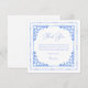 The blue and white tile bridal shower thank you card exudes elegance with its blend of modern design elements and Mediterranean charm. The hand-painted tile patterns adorn the borders, creating a captivating frame for the event details. Delicate watercolor accents evoke a sense of tranquillity and beauty, setting the perfect tone for an unforgettable celebration.