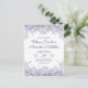 Elegant blue white wedding invitations for any time of the year. Your details are accented by top and bottom borders of line drawn Dianthus, Lily of the Valley, foliage and Lady Bugs. Postcard features design on back.