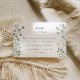 This RSVP card showcases a delicate watercolor wildflower design, with soft shades of green, blue, and subtle botanical accents. Ideal for rustic, garden, or boho-inspired weddings, this elegant card offers a charming way for guests to RSVP and select their meal preferences. Its simple yet romantic style is perfect for spring and summer weddings, and it pairs beautifully with other pieces in the matching collection to create a cohesive look for your wedding stationery suite.