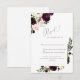 Elégante carte de réponse RSVP Blush & Burgundy Floral Wedding. Dîner & Danses.