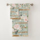 Des roses délicats et de couleur rousse, avec de la verdure, accompagnés de jolis eucalyptus sur un arrière - plan vert sauge. Faux garniture en or rustique et rayures avec des fentes clairsemées tout au long de ce magnifique design. Parfait pour votre salle de bain. Si joli. Parfait pour vous ou tous vos invités.