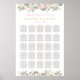 A romantic wedding seating chart framed by a gold border with lush watercolor blush and peach florals in the corners. "Wedding Celebration Honoring" appears in elegant script above your names and date. The organized table layout seats guests beautifully. Fully customizable.