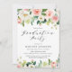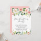 Elegant floral graduation party invitations featuring a top and bottom border of painted watercolor flowers and foliage in blush pink, white, and vibrant green. The words "Graduation Party" is displayed in an elegant script font with your party details shown below. The invite reverses to a solid blush pink background.