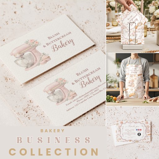 A refined blend of soft blush tones, delicate florals, golden croissants, and vintage baking illustrations creates a timeless patisserie-inspired aesthetic. The ornate central frame adds a classic European touch, while the pastel mixer and pastry details bring warmth and charm to the overall design.