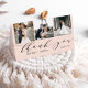 This elegant thank you card feature 3 photos with "thank you" in calligraphy script along with couple names and wedding date.