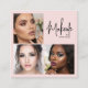 Elegant Blush Pink Black Script 3 Photo Makeup Square Business Card