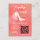 Bridal Shower enclosure card for registry features elegant white high heel Bride to be wedding with pink peach background.