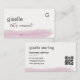 This elegant business card design features a soft blush pink watercolor brushstroke that flows gently across the bottom, paired with a modern mix of serif and script fonts. Subtle and stylish, it’s perfect for creatives, boutique brands, and service-based professionals seeking a feminine yet refined aesthetic.
