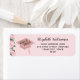 Ces étiquettes d'adresse de retour rose pâle à fleurs comportent du texte modèle pour customiser avec votre adresse, votre nom et votre année, et elles sont décorées avec l'illustration casquette d'un diplômé qui imite parties scintillant d'or rose et illustration de roses roses.