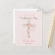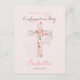 Elegant post card for confirmation with a floral cross on a blush pink backdrop. Personalize front side with text, name and date.