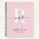 Elegant Blush Pink Cookbook Recipe Monogram Name Notebook