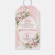 Elegant boho Quinceañera gift tag designed in soft blush pink and dusty pink tones with delicate floral details, eucalyptus greenery, and subtle rose gold accents. Perfect for Sweet 15 gifts, favors, and thank-you packages, adding a romantic and refined finishing touch to your celebration.