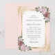 Invite your guests to your blush pink wedding party with these elegant floral wedding invitations featuring blush pink flowers and greenery framing the wedding details inside a gold frame adorned with gold confetti. Matching items available.