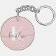 Elegant Blush Pink Grey Script Monogram Keychain