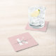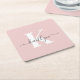 Elegant Blush Pink Grey Script Monogram Square Paper Coaster