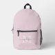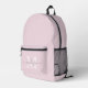 Elegant Blush Pink Minimal Name and Monogram Printed Backpack
