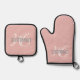 Modern blush pink script monogram name Oven Mitt & Pot Holder Set. Personalize with name and initial.