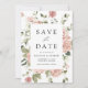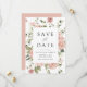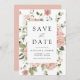 Elegant floral save the date cards featuring your names, wedding date, and location framed by a border of watercolor roses in shades of blush pink and dusty rose with lush green foliage. The romantic rose wedding save the date cards are perfect for your upcoming spring and summer garden weddings!