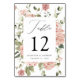 Elegant floral wedding table number cards featuring the table number, your names, and wedding date framed by blush pink and dusty rose with lush green leaves. The watercolor floral table numbers are perfect for your spring or summer wedding. Designed to coordinate with our Elegant Blush Roses and Greenery wedding collection.