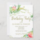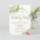 Classy floral birthday party stylish invitation template on a clear white (changeable) background featuring big blush pink and coral red roses blooms with sage green and teal blue foliage and leaves and with golden beige tan script lettering. Fill in your information in the spots, You can choose to customize it further changing fonts and colours of lettering. ++++++++++++++ The invitation is suitable for modern watercolor floral spring summer or autumn fall outdoor garden or backyard rustic elegant birthday parties or family anniversaries.