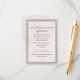 The Laced wedding invitation suite features a subtle blush pink watercolor background with a delicate black lace oval surrounding traditional text, a fancy script, and proper etiquette. The suite comes with all additional pieces, including reply cards, reception card, direction enclosures, belly bands, and more. Day-of items, including favour tags, wine labels, napkins, and table numbers are also available. Customize the text and text colours to be any colour you'd like.