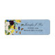Étiquette d'adresse de retour personnalisable avec écriture élégante bohème, jolies fleurs printanières girly colorées pensées, jonquilles et papillons sur un fond bleu pâle victorien vintage.