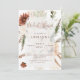 This elegant design features stunning spice brown, moss green, and cream-colour bohemian floral bouquets. To enhance the details of your day, the script includes whimsical calligraphy against a transparent deckled edge frame. Customize your personal details on the front with your monogram initials on the back of the card, and you've made it your very own.