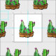 An illustration of three cute cacti with pink flowers in little terracotta pots.