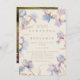 Cette élégante invitation de mariage est parfaite pour les mariages du printemps et de l'été. Cette conception comporte un anneau d'iris aquarelle dans les tons lilas et bleu périvent. De subtiles touches d'or ajoutent un élément magique et scintillant.